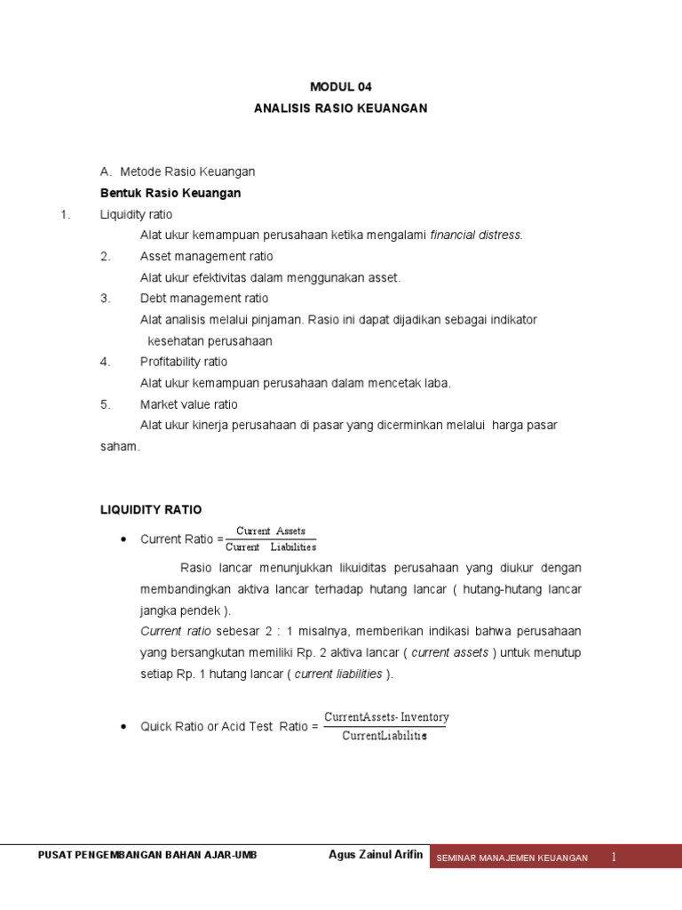 Modul 04 Analisis Rasio Keuangan Current Ratio Sebesar 2 1 Misalnya Memberikan Indikasi Bahwa Perusahaan Pdf